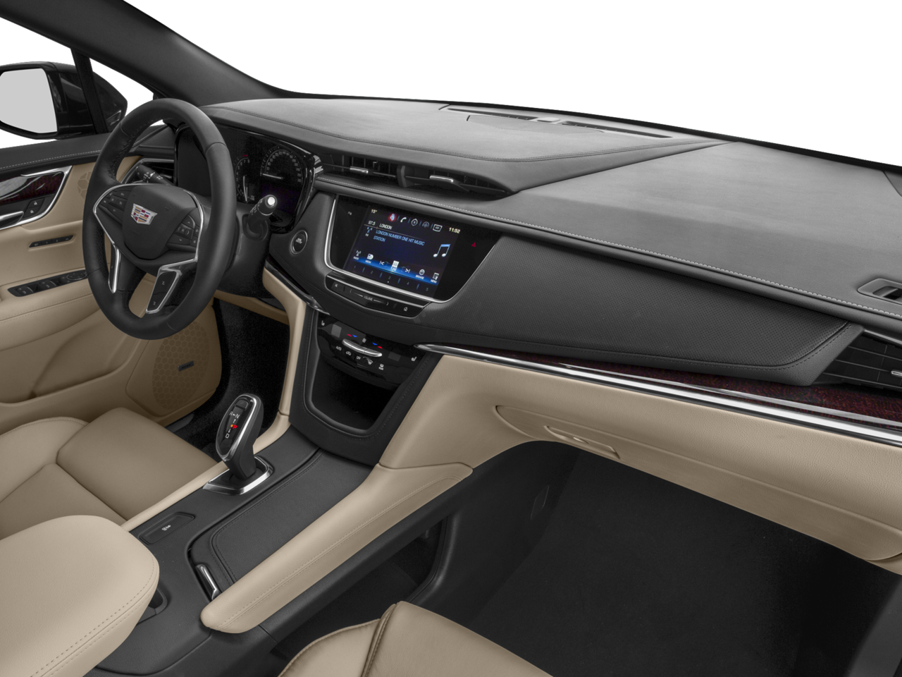- Cadillac CUE Information and Media Control System, AM/FM stereo with 8" diagonal color information display, four USB ports, two auxiliary power outlets, auxiliary input jack, Natural Voice Recognition and Phone Integration for Apple CarPlay and Android Auto capability for compatible phone (Upgradeable to (IO6) Cadillac CUE Information and Media Control System with Embedded Navigation.)